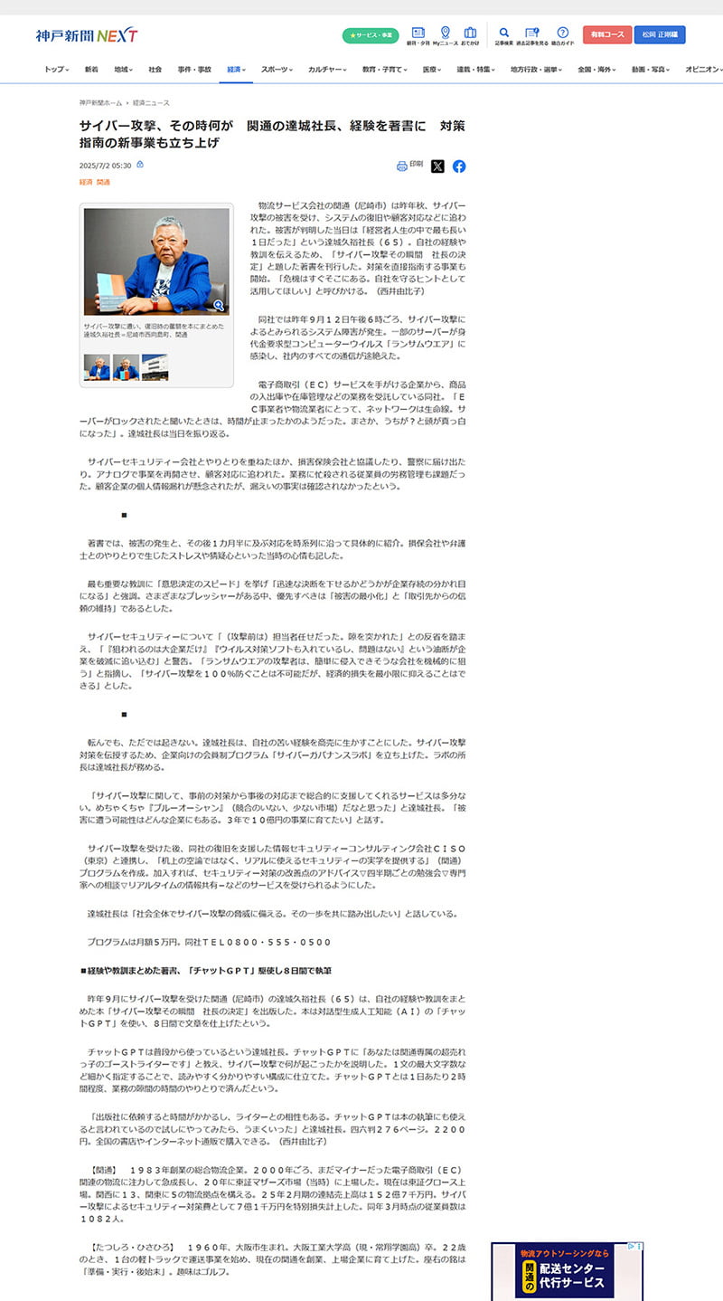 神戸新聞社|Webメディア「神戸新聞NEXT」に書籍に関する取材記事が掲載されました。