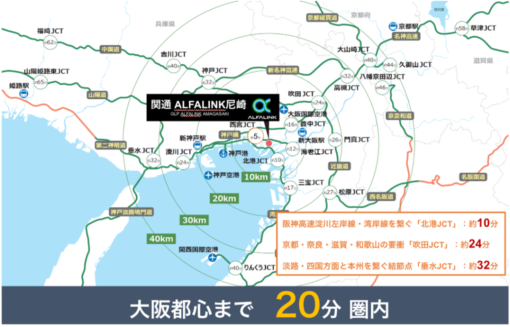 2)卓越した都市近接性:大阪都心まで20分圏内