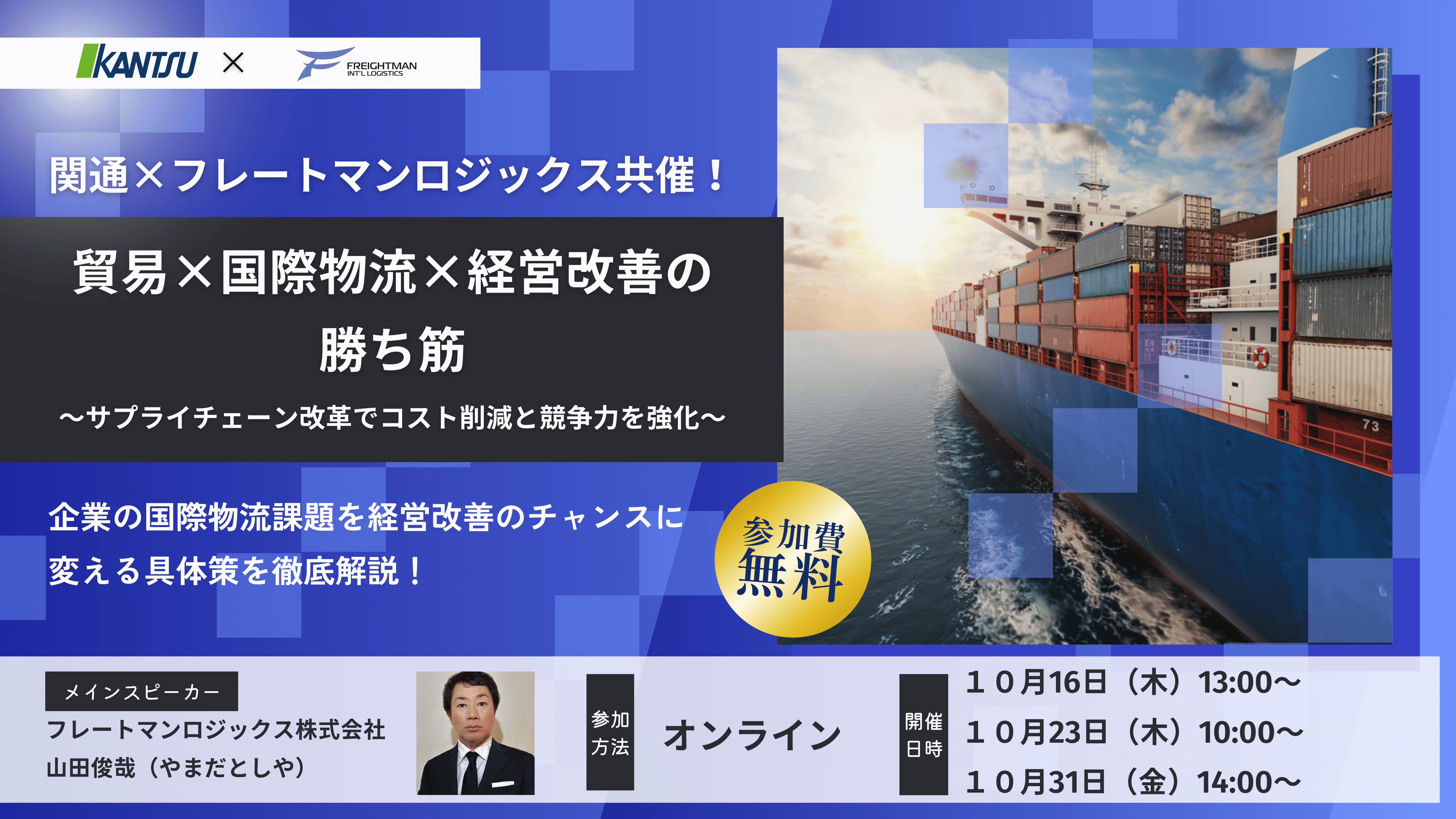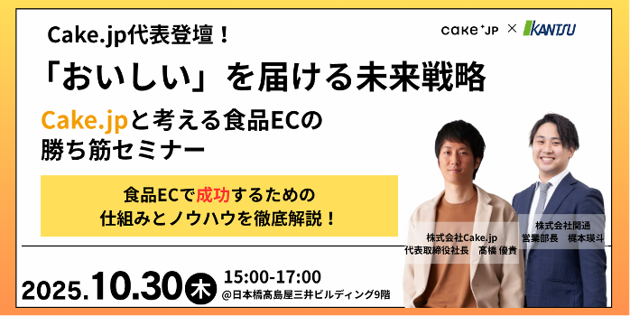 セミナー セミナープレスリリース 【10月30日開催・食品EC事業者向けセミナー】 株式会社Cake.jp × 株式会社関通 共催 セミナープレスリリース 【無料セミナー】貿易×国際物流×経営改善の勝ち筋 〜サプライチェーン改革でコスト削減と競争力を強化〜 > 学べる倉庫見学会についてはこちら <PREV:トップページ